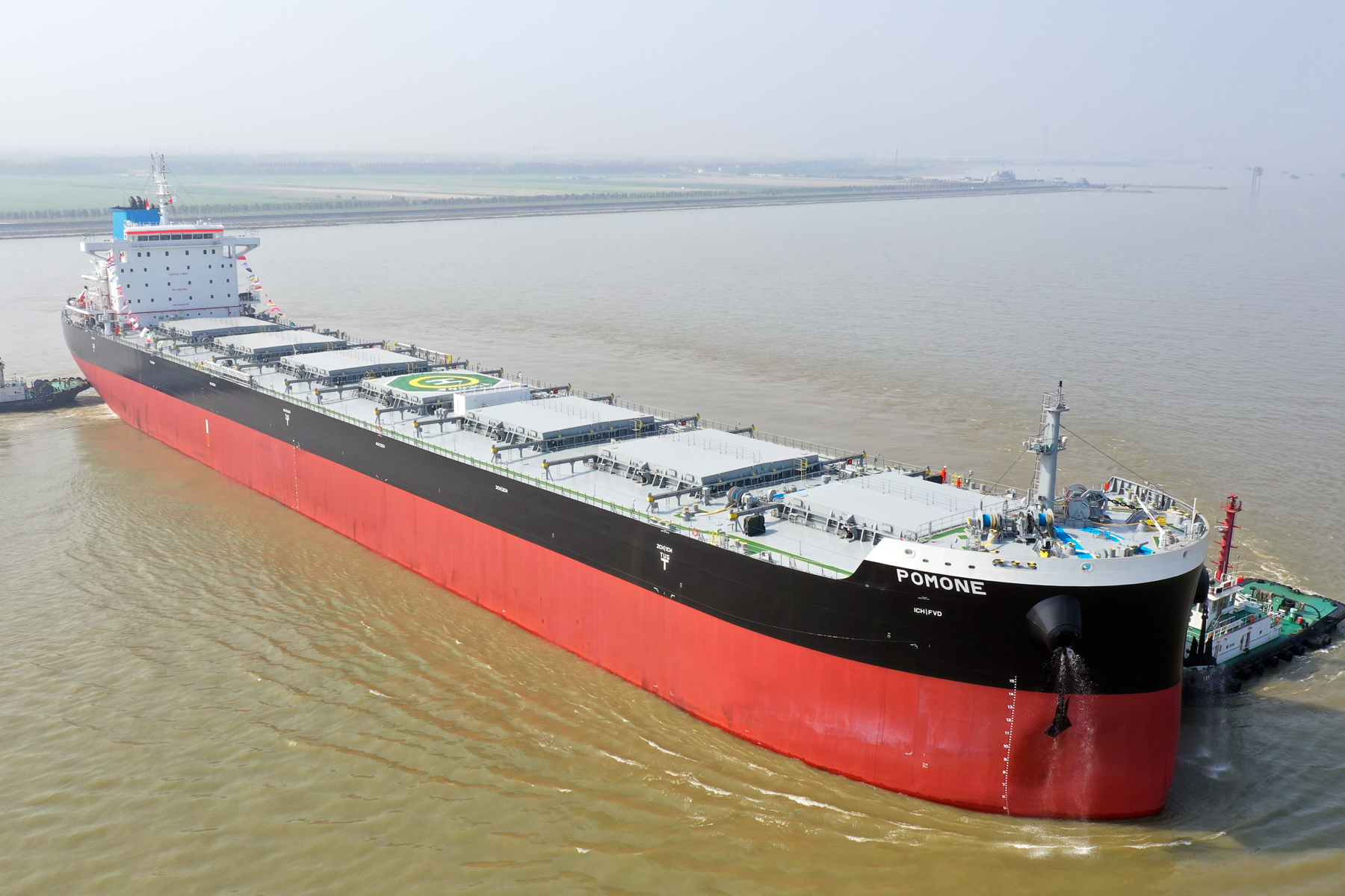 11月1日上午9時(shí),我集團(tuán)子公司江蘇揚(yáng)子三井造船有限公司為日本船東公司建造的82300DWT散貨船 “POMONE”輪(“波摩娜”,掛新加坡旗)通過(guò)電簽順利交付?!癙OMONE”輪總長(zhǎng)229.00米,兩柱間長(zhǎng)225.29米,型寬32.26米,型深20.00米,設(shè)計(jì)吃水12.20米,結(jié)構(gòu)吃水14.45米,入NK船級(jí)社。