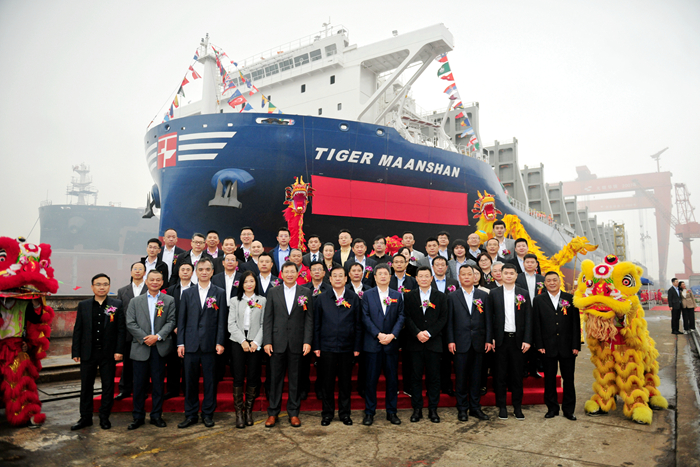 11月5日,700箱級罐箱甲板船“TIGER MAANSHAN”輪順利出塢。來自馬鞍山市市政府、馬鞍山市交通局、馬鞍山市投資促進中心、鄭蒲港新區(qū)、馬鞍山綜合保稅區(qū)、安徽省港口運營集團、馬來西亞國家石油公司、中集安瑞科南通中集能源裝備、光大銀行馬鞍山分行、馬來亞銀行、老虎集團、老虎燃氣、中國船級社(CCS)、上海金融與發(fā)展研究院等單位的領導和嘉賓出席了出塢儀式。我集團名譽董事長任元林、董事長任樂天、副總經(jīng)理杜成忠等陪同見證出塢。