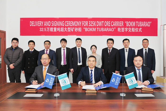 “BOKM TUBARAO”輪的順利交付,標(biāo)志著我集團(tuán)為交銀租賃、KMARIN建造的4艘325000DWT系列超大型礦砂船順利收官。
