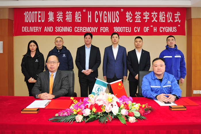 1月28日上午8時(shí)18分,揚(yáng)子長(zhǎng)博造船為華元航運(yùn)公司建造的首制1800TEU集裝箱船“H CYGNUS”輪順利交付。