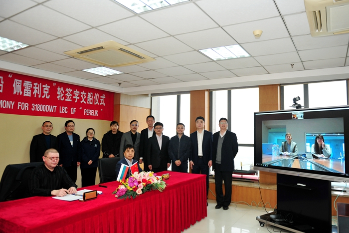 在本項(xiàng)目上,中信保提供了出口信用擔(dān)保,中國(guó)銀行在交船前提供了還款保函支持,在交船時(shí)為船東提供了融資支持。中信保聯(lián)合中國(guó)銀行,充分發(fā)揮政策性職能,利用專業(yè)的風(fēng)險(xiǎn)管理能力,為我集團(tuán)保駕護(hù)航,順利為境外船東提交了一批批高質(zhì)量船舶。當(dāng)日下午,通過(guò)視頻會(huì)議形式舉辦交船簽字儀式。保加利亞國(guó)家航運(yùn)公司執(zhí)行董事亞歷山大·卡爾契夫先生、我集團(tuán)總經(jīng)理助理吉宏飛先生以及中信保、中國(guó)銀行、克拉克森等相關(guān)嘉賓共同見(jiàn)證下,船東現(xiàn)場(chǎng)辦經(jīng)理Veselin Yanev先生與我集團(tuán)副總經(jīng)理杜成忠先生分別代表雙方簽署交船文件。 “PERELIK”(佩雷利克)輪順利交付,擇吉日將揚(yáng)帆啟航。