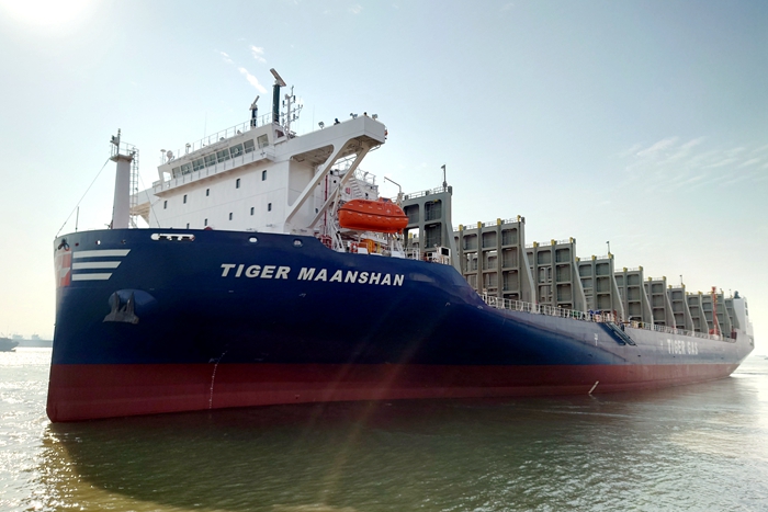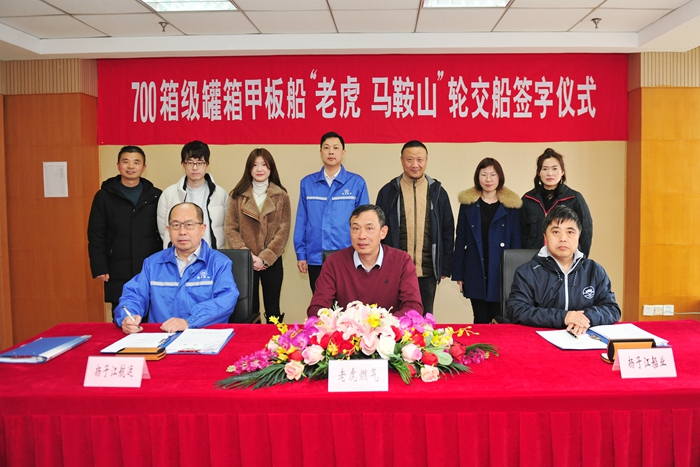 2月14日,我集團與老虎燃?xì)饴?lián)合研發(fā),由新?lián)P子造船建造的集團第二艘700箱級罐箱甲板船“TIGER MAANSHAN”輪順利交付。