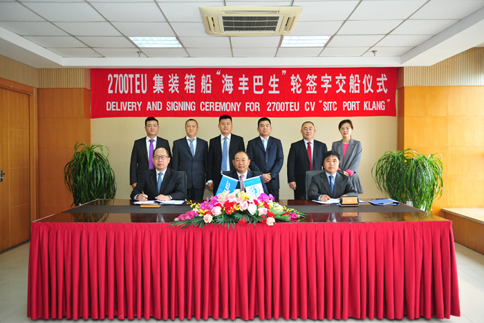 當(dāng)天,海豐航運(yùn)集團(tuán)副總裁肖森元先生,我集團(tuán)副總經(jīng)理杜成忠先生,副總經(jīng)理張濤先生分別代表各方簽署交船文件,“SITC PORT KLANG”(海豐巴生)輪順利交付。