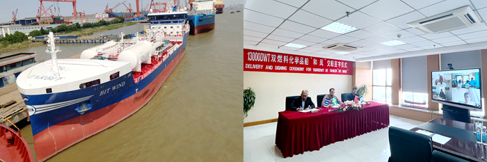 連同4月19日交付的首制船“BIT WAVE”輪,兩艘13000DWT化學(xué)品船項目完美收官。