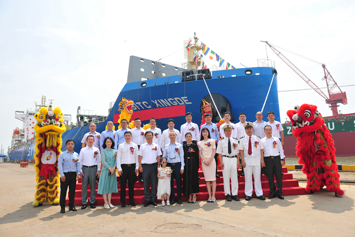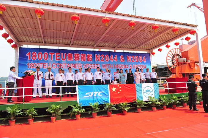 8月29日上午,我集團(tuán)新?lián)P子造船為海豐國(guó)際在我司建造的兩艘1800TEU集裝箱姊妹船,舉行了隆重的命名儀式。