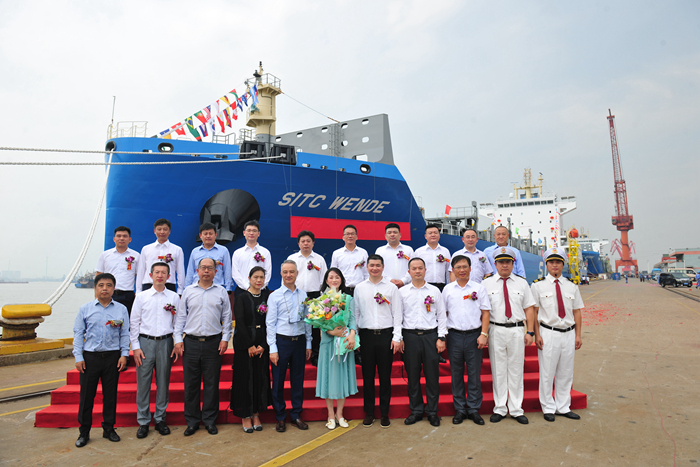 馬繼偉為“SITC XINGDE”輪命名,楊舒瑞為新船砍纜并擲香檳禮;李瑞民為“SITC WENDE”輪命名,殷春燕為新船砍纜并擲香檳禮,祝福新船一帆風(fēng)順,班班滿載。8月29日,上海海豐船舶管理中心總經(jīng)理李瑞民先生,我集團(tuán)副總經(jīng)理杜成忠先生,副總經(jīng)理張濤先生分別代表各方簽署“SITC WENDE”輪交船文件。8月30日下午,“SITC WENDE”輪離開新?lián)P子造船碼頭,開啟交付后的首航。