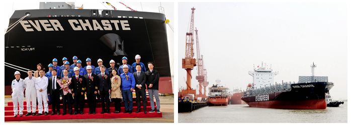 3月30日上午,我集團為日本PSM公司建造的第二艘1800TEU箱船在新?lián)P子造船順利命名交付。在儀式現(xiàn)場,通過視頻連線方式,愛媛銀行常務(wù)董事MUNEO TSUBOUCHI先生將新船命名為“EVER CHASTE”輪,船東現(xiàn)場辦經(jīng)理Masahiro Shimizu先生,為新輪砍纜擲香檳,為新船首航祈福。中午時分,鞭炮齊鳴、禮炮歡送,“EVER CHASTE”輪開啟首航。至此,我集團為日本PSM公司建造的兩艘1800TEU集裝箱船,完美收官。