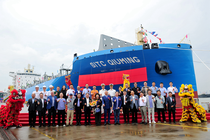 儀式上,楊紹鵬先生代表船東致辭,任樂天先生代表船廠致辭。雙方共同回顧了合作經(jīng)歷以及未來繼續(xù)加強(qiáng)攜手的意愿,期待為社會(huì)、為客戶創(chuàng)造更高的價(jià)值。自2017年雙方初次接洽以來,海豐國(guó)際總計(jì)在我集團(tuán)下單達(dá)36艘新造船項(xiàng)目。該艘新船交付后,截止目前我司已共為海豐國(guó)際交付24艘新造船,計(jì)劃年內(nèi)還將交付5艘新船。寧高寧先生將新船命名為“SITC QIUMING”(海豐秋明)輪,程虹女士為新船砍纜并擲香檳禮,王玉鎖先生寄予祝福。嘉賓們共同祝福新船一帆風(fēng)順,班班滿載。