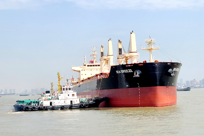 4月16日,我集團(tuán)新?lián)P子造船有限公司為SEA BREEZE GMBH & CO. KG船東建造的一艘38500DWT散貨船,通過(guò)電簽的方式完成交付。該船于4月20日下午14時(shí)離廠,開啟首航。