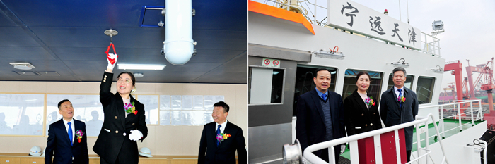 12月13日,我集團(tuán)與寧波遠(yuǎn)洋在新?lián)P子造船碼頭,共同為雙方合作的第二艘3300TEU集裝箱船舉行了隆重的命名交船儀式。新船命名人寧波航交所黨總支書記、董事長(zhǎng)、總經(jīng)理林巧女士;浙江省海港集團(tuán)、寧波舟山港股份有限公司黨委副書記、董事蔣一鵬先生;寧波舟山港股份有限公司黨委副書記、董事、紀(jì)委書記、工會(huì)主席金星先生,寧波遠(yuǎn)洋運(yùn)輸股份有限公司總經(jīng)理、黨委副書記陳曉峰先生;中國(guó)船級(jí)社江蘇分社黨委書記曹俊先生以及我集團(tuán)副總經(jīng)理兼新?lián)P子造船總經(jīng)理杜成忠先生,集團(tuán)副總經(jīng)理吉宏飛先生,新?lián)P子造船副總經(jīng)理倪榮先生等領(lǐng)導(dǎo)和嘉賓出席了儀式。林巧女士將新船命名為“寧遠(yuǎn)天津”輪,并擲香檳禮。嘉賓們共同與新船合影留念,祝福新船通江達(dá)海、班班滿載,為船員帶來(lái)平安,為船東和合作各方帶來(lái)財(cái)富和榮耀。
