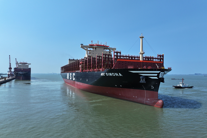 8月31日下午,我集團(tuán)揚(yáng)子鑫福造船為SEASPAN、MSC船東建造的第九艘16000TEU集裝箱船——“MSC SIMONA”輪交付離廠,上線MSC船隊(duì)運(yùn)營(yíng)。