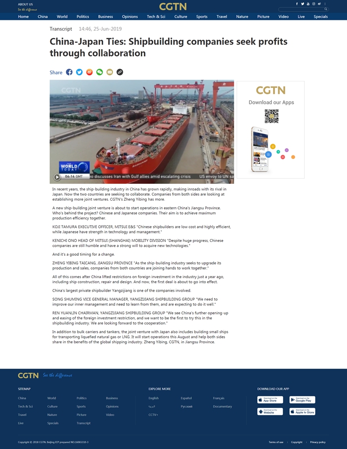 近年來,中國造船業(yè)迅猛發(fā)展,與日本船企形成了競爭。現兩國正致力于尋求在造船方面合作共贏,兩國企業(yè)均期望建立更多合資公司。CGTN的鄭亦冰帶來以下最新報道。